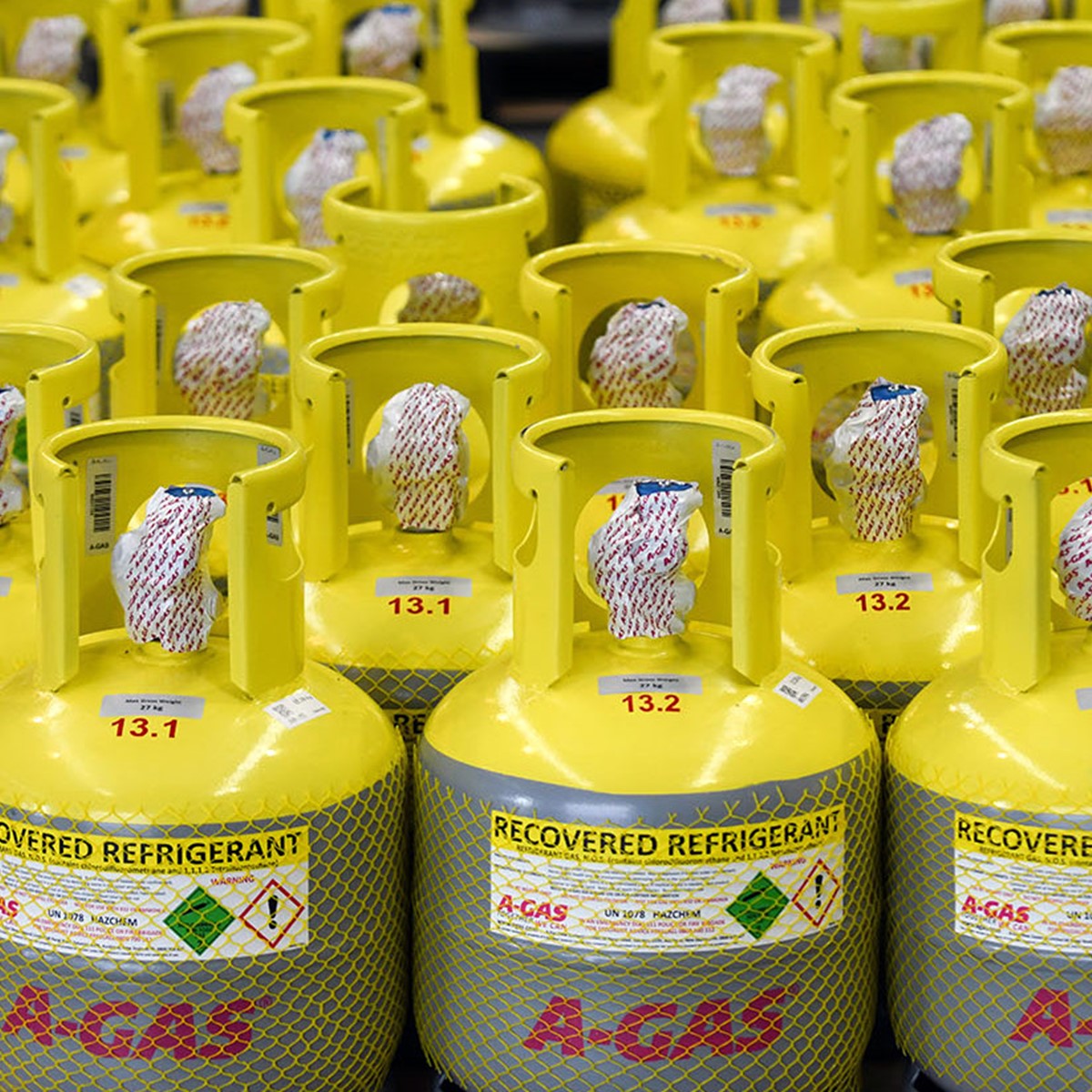Do not vent refrigerant. Recover refrigerant into A-Gas reclaim cylinders. We will pick up your full cylinders and exchange them with empty cylinders, ready for your next recovery.